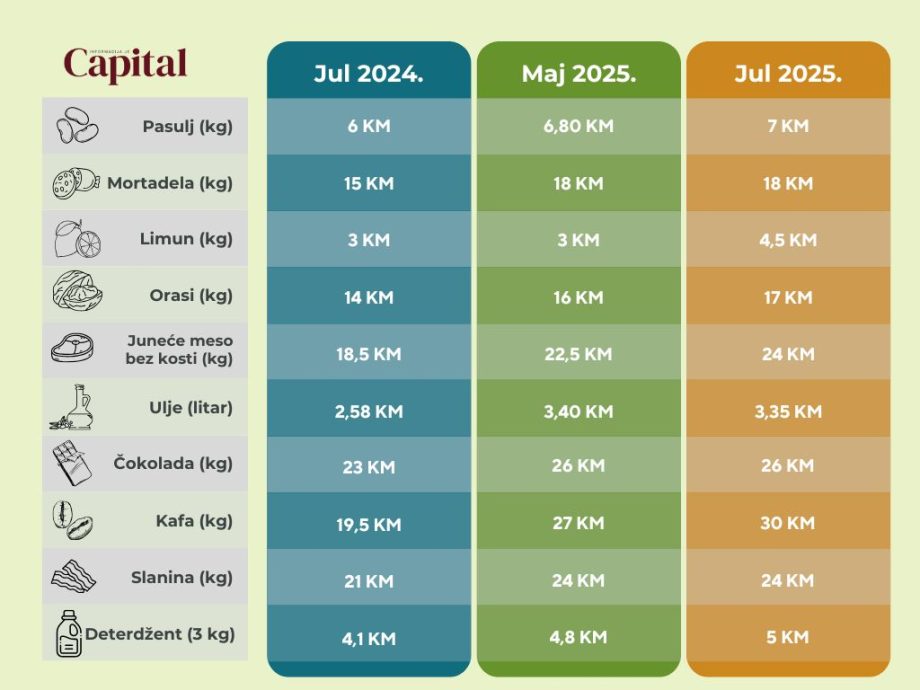 Tu poskupljenjima nije kraj. Kilogram pasulja je poskupio sa šest na sedam maraka, kilogram mortadele sa 15 na 18 KM, a limuna sa tri na 4,5 KM.