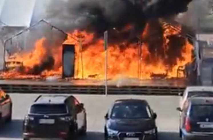 Kako se vidi na snimcima, gori veliki šator koji se nalazi između zgrade Skupštine i Ćacilenda.