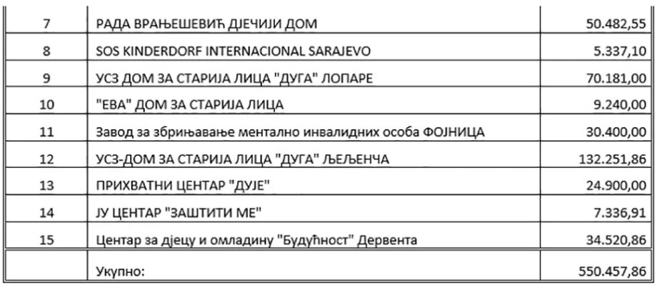 “Od ukupnih obaveza prema dobavljačima, prednjače obaveze prema ustanovama socijalne zaštite za smještaj socijalno ugroženih lica. Za domski smještaj, u kome je smješteno 72 štićenika Centra od čega je 12-toro djece, obaveze iznose preko 550.000 KM”, naveli su u ovom Centru.
