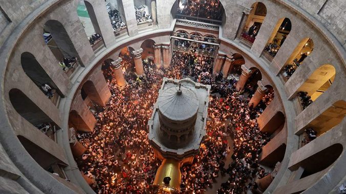 U hramu Groba Gospodnjeg u Jerusalimu pravoslavno sveštenstvo prizvalo je Blagodatni oganj, čiji silazak označava vidljivu pojavu Svetog Duha, ali i istinitost Vaskrsenja Hristovog.
