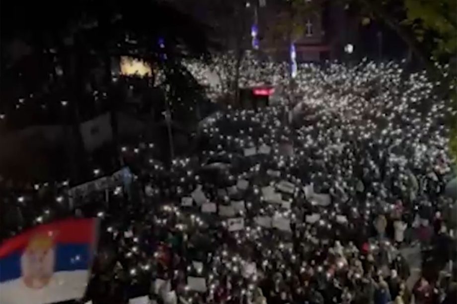 Studenti prave buku, duvajući u pištaljke, kao i sinoć ispred predsjedništva tokom obraćanja predsjednika Aleksandra Vučića, prenosi 021.rs.