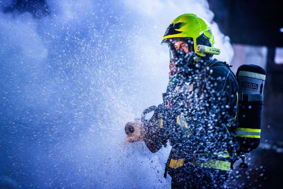 Gore dva teretna vagona na željezničkoj stanici, vatrogasci na terenu