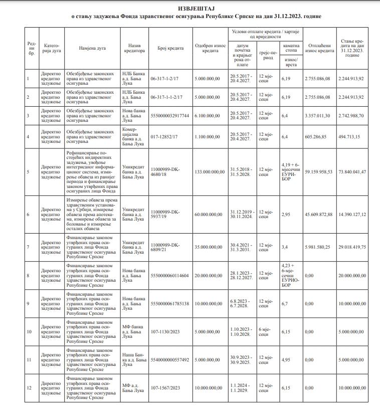 Kredit od 133 miliona KM korišten je, između ostalog, za refinansiranje obaveza i uvođenje IZIS-a, dok je kredit od 60 miliona maraka korišten za izmirenje obaveza prema zdravstvenim ustanovama u Srbiji.
