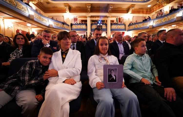 Na otvaranju komemoracije u čast velikana narodne muzike Halida Bešlića u Narodnom pozorištu u Sarajevu na binu su izašli Halidova unuka Lamia i njen brat.