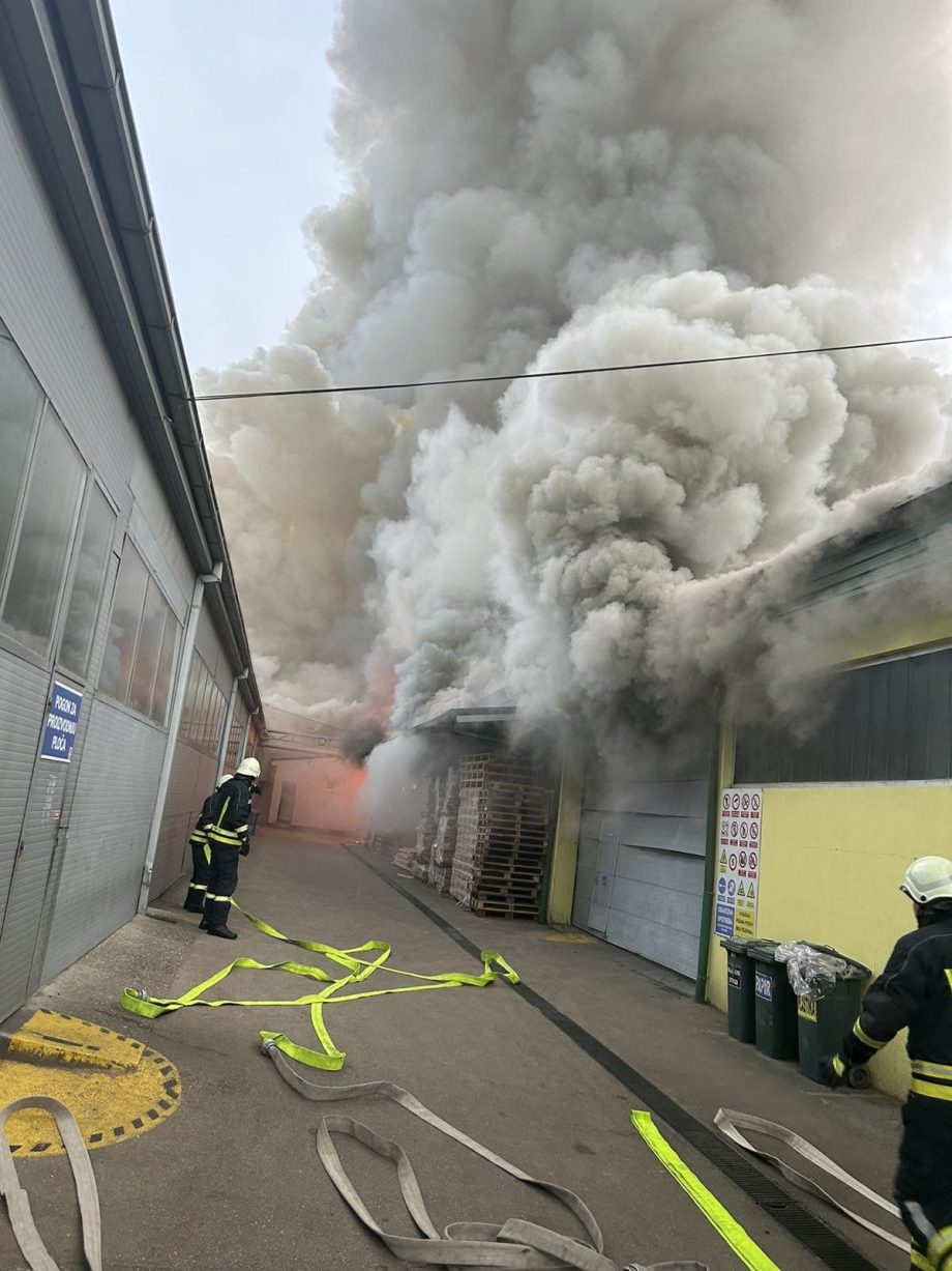 U preduzeću „Mega Drvo“ juče ujutro je došlo do požara u kojem su izgorele četiri proizvodne hale, dio lakirnice i velika količina gotovih proizvoda.