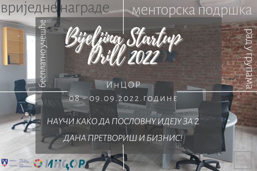 Učešće na START UP DRILL je besplatno a mjesto održavanja je Inovacioni centar za održivi razvoj – InCOR u Ulici Filipa Višnjića (iznad kafea “Garden”) u Bijeljini.