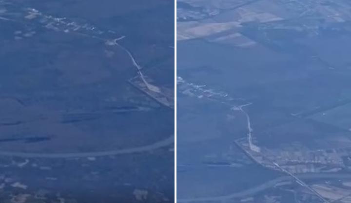Sa visine od deset kilometara i barem isto toliko horizontalne udaljenosti most na Savi se jasno vidi, kao i cijela dionica brze ceste od mosta do petlje kod Novog Varoša u Hrvatskoj, gdje će se putnici uključivati na staru cestu do auto-puta kod Okučana.