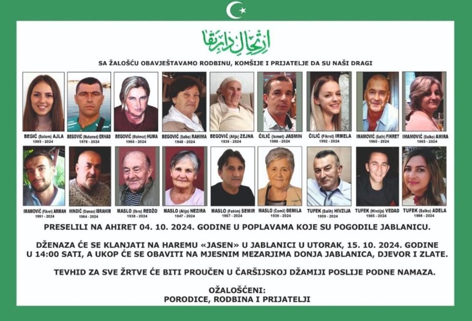 “Iza mojih leđa nalazi se veliki dio mog džemata, njih 18. Pripadali su mom džematu. U jednu ruku hvala Allahu našli smo sve, da nađu svoj mir u krugu svojih najmilijih. Teška je i potresna situacija. Malo smo mi mjesto da izgubimo ovoliko ljudi u jednom danu. Allahova je odredba najpreča. Oni treba da nam budu opomena i uputstvo za nastavak života. Njih ne smijemo zaboraviti, kao i porodice koje su ostale bez svojih domova. Sve žrtve su povezane međusobno”, kazao je Jahić u suzama.