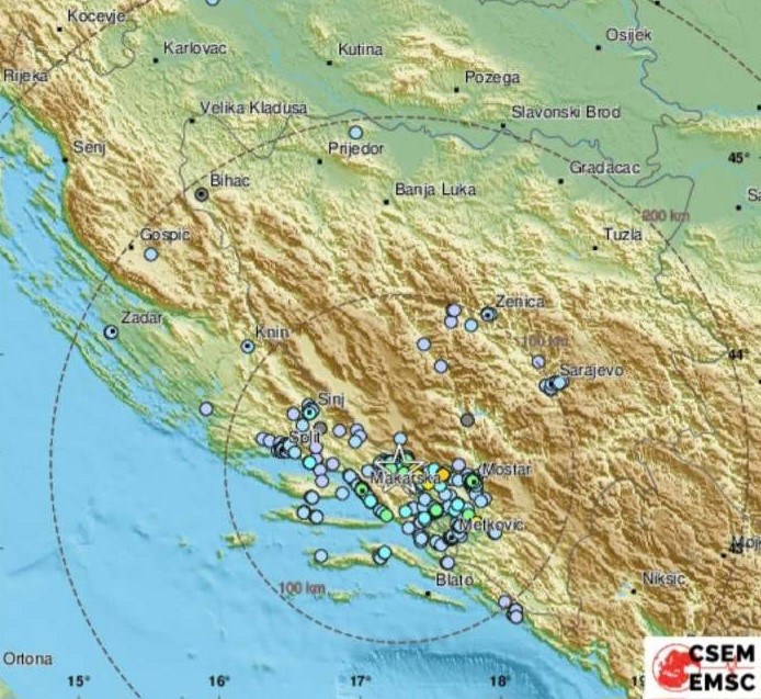 Prema Evropsko-mediteransko seizmološkom centru (EMSC) zemljotres je bio na dubini od osam kilometara sedam kilometara od Gruda i 39 kilometara od Mostara.