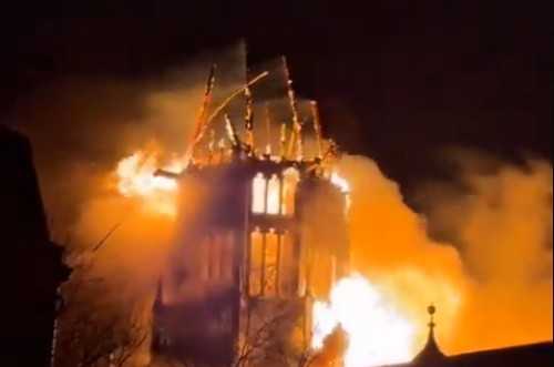 Usljed požara urušili su se dijelovi tornja i krova zbog čega je naređena evakuacija i prekinuto napajanje strujom za oko 90 obližnjih kuća, prenio je NL Tajms.