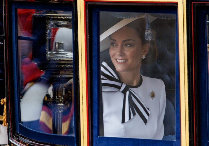 I nakon što je prije tri mjeseca rekla da boluje od raka. Viđena je u službenom automobilu sa djecom, Šarlot, Lujem i Džordžom sa kojima će se pojaviti na proslavi službenog rođendan kralja Čarlsa III u Londonu. Vidjećemo je kasnije na balkonu Bakingemske palate sa ostalim članovima dinastije.