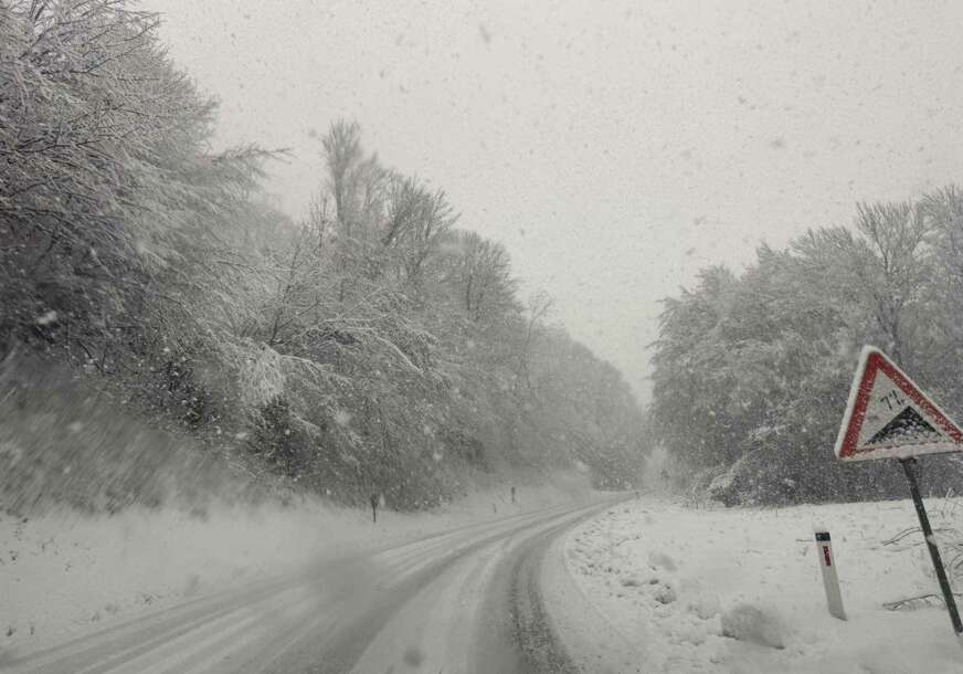 Tako je na magistralnom putu M-5, odnosno Bihać Bosanski Petrovac – Ključ, pala velika količina snijega zbog čega je saobraćaj otežan.