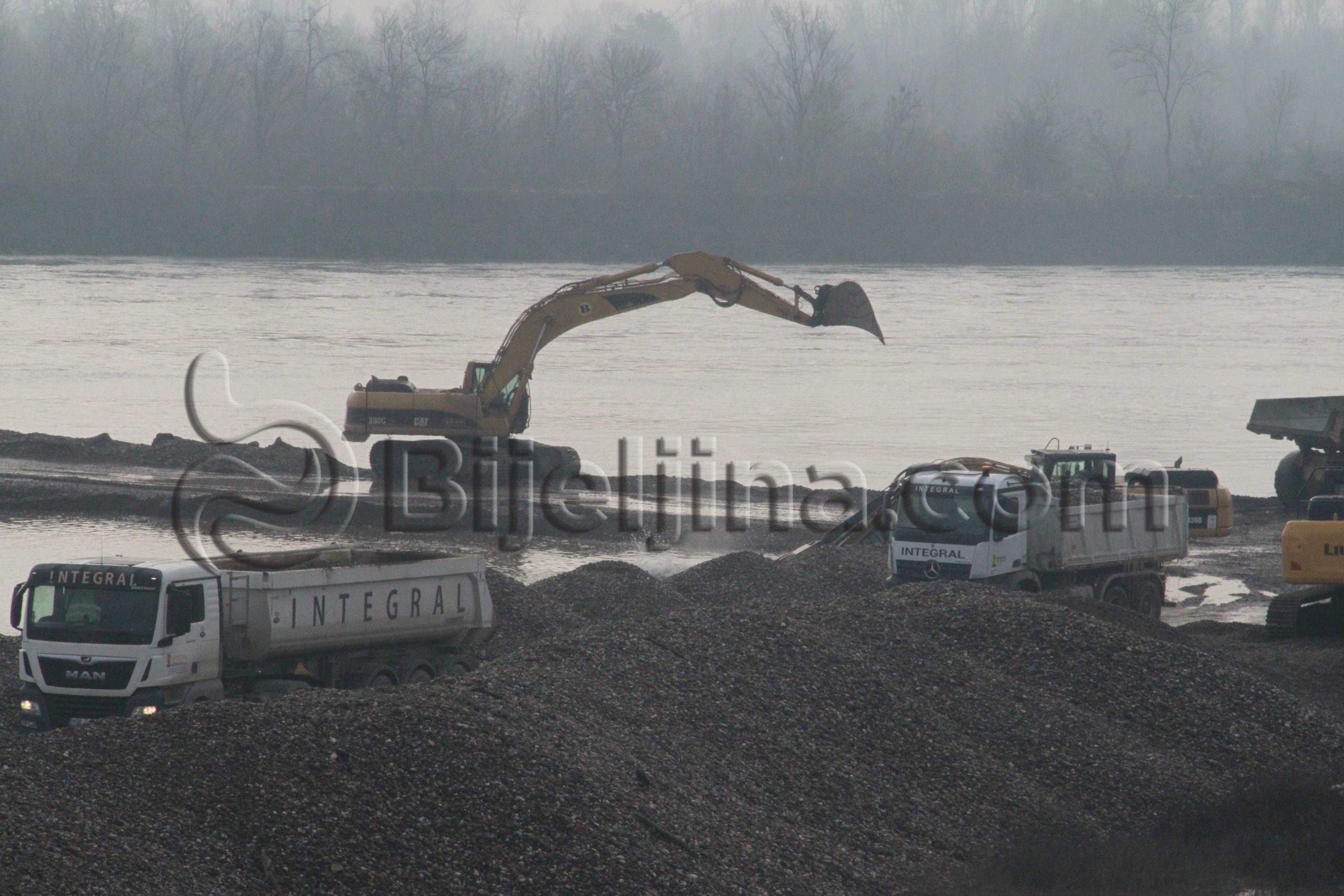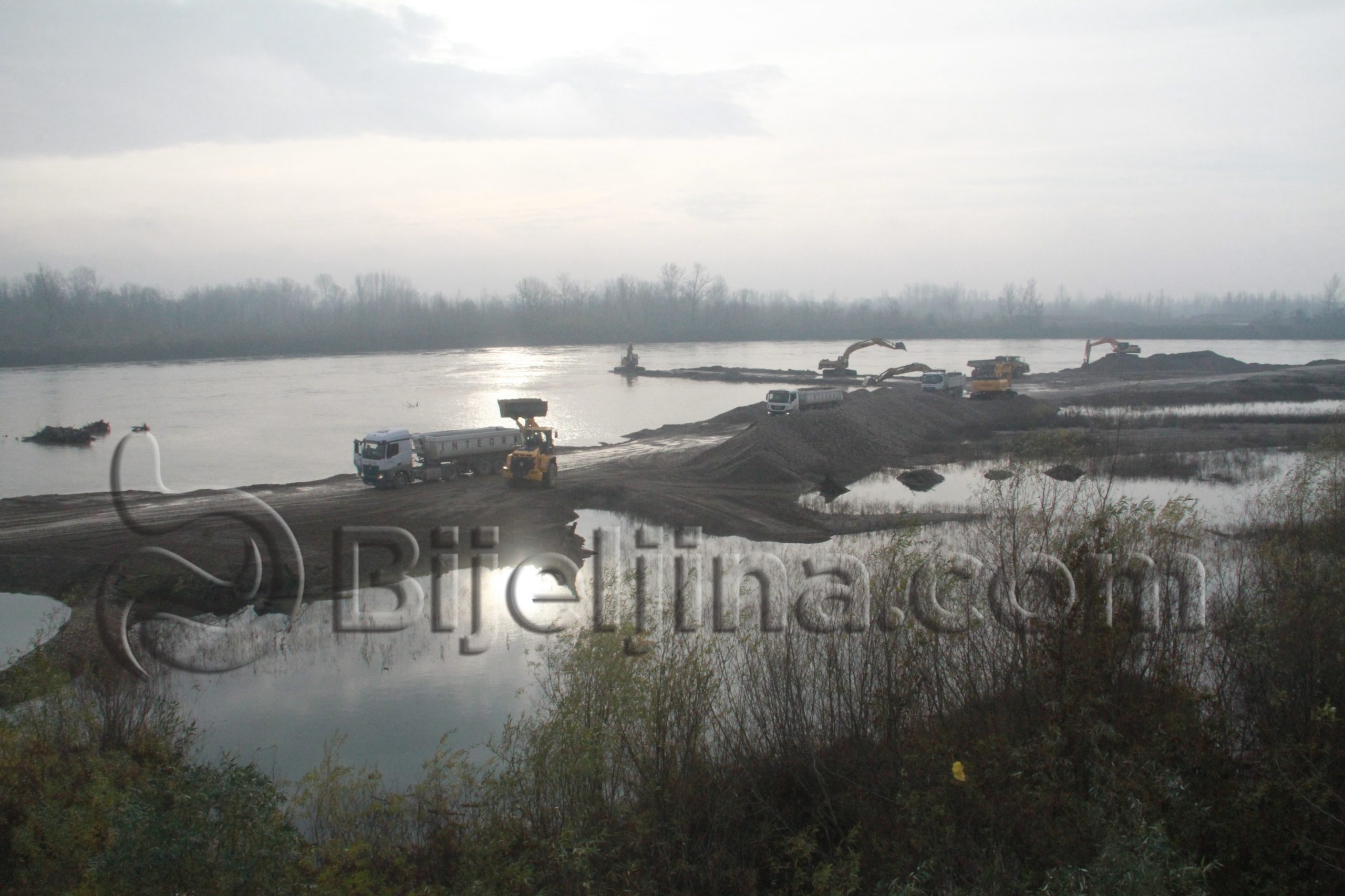 Kako smo nezvanično saznali, šljunak se danonoćno vadio na desnoj obali, u Srbiji, za potrebe izgradnje dionice auto – puta Kuzmin – Rača, dok se sada na lijevoj obali eksploatiše za potrebe izgradnje dionice auto – puta Bijeljina – Rača. Moćne mašine, buldožeri i kamioni svakodnevno iz riječnog korita vade i odvoze na trasu na hiljade kubnih metara šljunka. Slična situacija je na srbijanskoj obali.