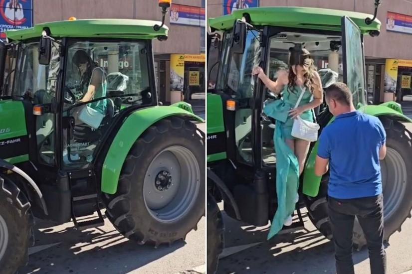 Na Trgu partizana u Užicu juče niko nije ostao ravnodušan jer je svim prisutnima jedna devojka izazvala različite reakcije – na svoju malu maturu došla je Tijana Marković, ali to ne bi bilo ništa neobično da nije iskočila iz traktora.