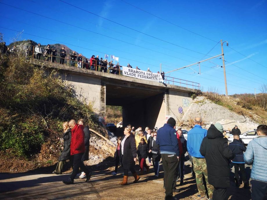 Nekoliko desetina građana i zaposlenih u “Željeznicama Federacije BiH” i preduzeća “Gikil” okupilo se u Donjoj Jablanici na mirnim protestima i u četvrtak, 21. novembra, jer pruga u ovoj opštini nije sanirana.
