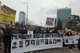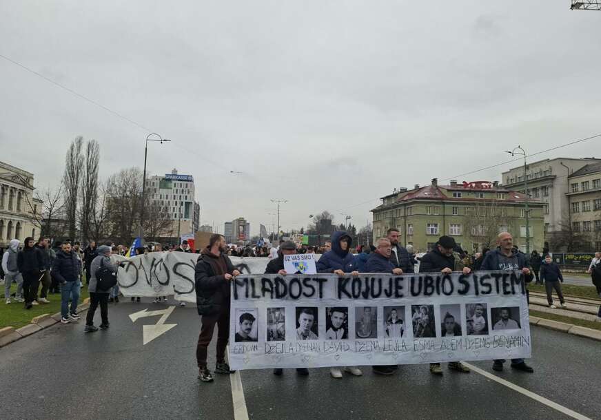 Na glavnom transparentu koji predvodi kolonu su postavljene fotografije mladih osoba koje su smrtno stradale posljednjih godina u Sarajevu.