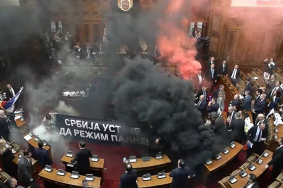 Nakon toga, poslanici opozicije su u sali zapalili baklje i bacili dimne bombe.