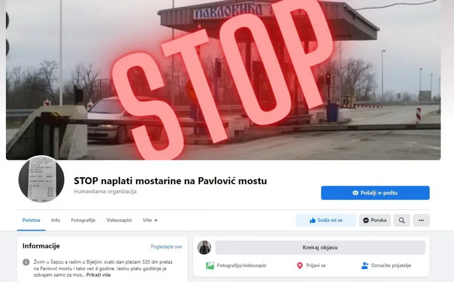 Obični građani negoduju. Zato su oformili Facebook grupu s nazivom: „Stop naplati mostarine na Pavlović mostu“, ali efekta nije bilo.