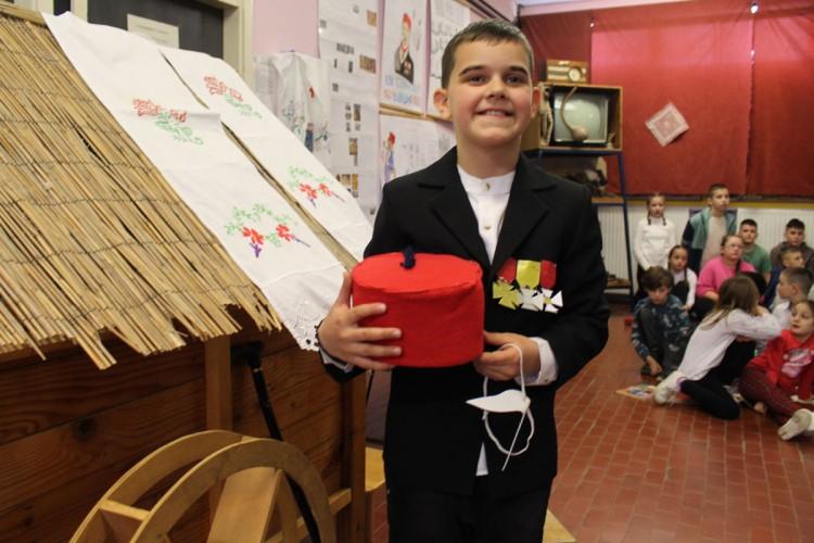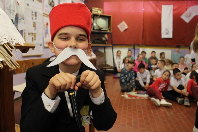 “Za ovu ulogu pripremali su me strina, stric, dvojica braće, mama, baba, rodbina i komšije. Brkovi su od papira, kaput je od brata Relje, štap je od babe, kapu sam napravio ja, košulju su mi pronašli negdje, ne znam ni ja gdje i kako, valjda od druge djece iz Grbavaca. Priglavke mi je ovdje nazula učiteljica”, opisuje ovaj trećak svoj glumački zadatak i peripetije koje su sve to pratile.