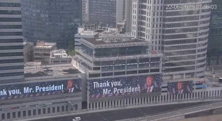 U Tel Avivu, izraelskom gradu koji je posebno pogođen iranskim napadom, osvanuli su veliki plakati s likom američkog predsjednika Donalda Trampa i porukom: “Hvala gospodine predsjedniče”.