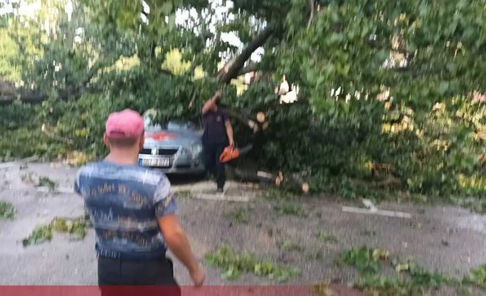 Naime, drvo je nakon udara groma palo na parkirana vozila Doma zdravlja koja su znatno oštećena.