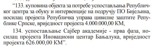Vlada Republike Srpske 27. put je dopunila ovogodišnju odluku o prioritetnim projektima iz Programa javnih investicija koji se finansiraju iz budžeta.