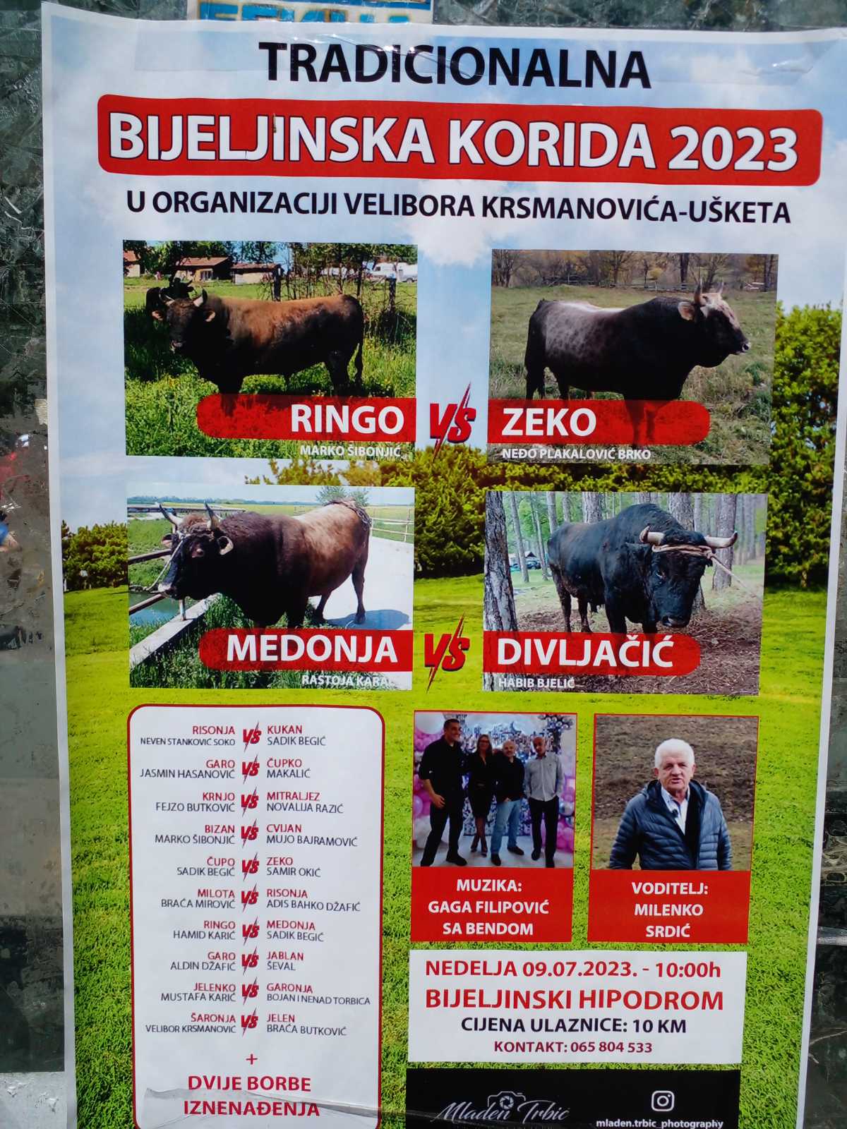 Organizator ove neobične manifestacije, koja se već desetak godina organizuje oko Petrovdana u Bijeljini, Velibor Krsmanović, najavio je četrnaest borbi bikova, ističući da će na megdan izaći i poznata grla, kao što su Ringo, Zeko, Medonja i druga, koja iza sebe imaju bezbroj dobijenih megdana.