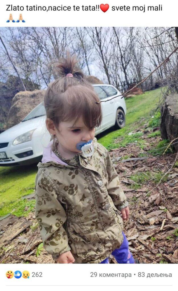 “Zlato tatino, naći će te tata! Svete moj mali!”, napisao je Miloš Ilić na svom Fejsbuk profilu gdje je okačio i fotogrfaiju njegove ćerkice za kojom se traga od juče.