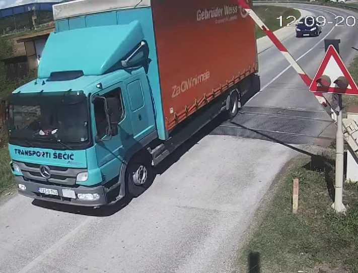 Naime, incident se dogodio 12. septembra, a snimak koji su Željeznice RS objavile na društvenim mrežama prikazuje kako kamion u početku zastaje ispred prelaza, dok su polubranici bili podignuti. Međutim, vozač nastavlja vožnju i prelazi preko pruge u trenutku kada polubranici počinju da se spuštaju. Tom prilikom prednji polubranik biva polomljen.