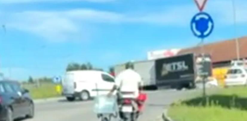 Na snimku koji je poslao čitalac ATV-a, vidi se čovjek koji jednom rukom upravlja motociklom, a drugoj drži, vjerovali ili ne, tačke.