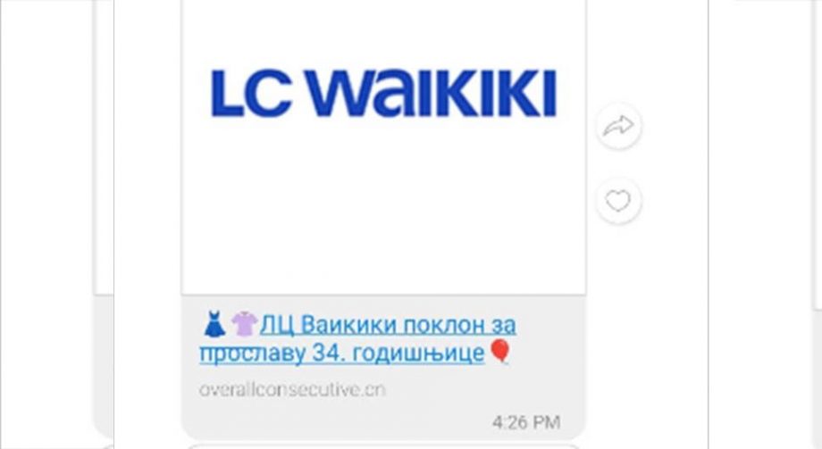 “Nažalost, radi se o prevari iza koje ne stoji LC Waikiki kompanija. Sve aktuelne novosti i promocije uvijek objavljujemo putem naših društvenih mreža, te Vas molimo da ne učestvujete u nagradnim igrama koje se ne nalaze na LCW oficijalnim stranicama”, navedeno je u komentaru.