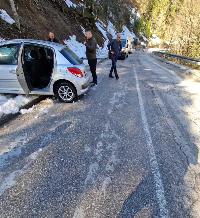 Takođe, zabilježio je i trenutak kada je jedan vozač izgubio kontrolu nad vozilom zbog poledice.