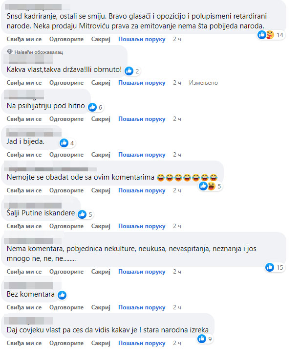 “Dobro je nama ko nas predstavlja. Pametan čovjek nema šta dodati, to je dno dna; Daj čovjeku vlast pa ćeš da vidiš kakav je, stara narodna izreka; Žena je ili pijana ili drogirana; Strašno kakav riječnik ima; Gdje ih sabraše ovako pismene”, samo su neki od komentara građana.