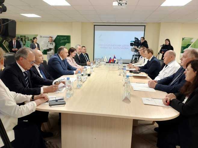 Dodiku i delegaciji Republike Srpske tokom današnjeg sastanka sa rukovodstvom Onkološkog centra Napalkov predstavljen je rad i glavne oblasti djelovanja ove ustanove.