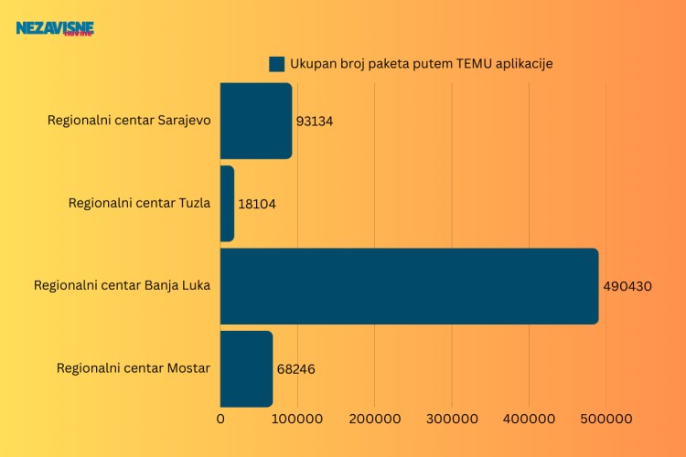 Da Temu groznica i dalje trese građane Bosne i Hercegovine, pokazuju najnoviji podaci Uprave za indirektno oporezivanje BiH, prema kojima je do sada na adrese bh. građana stiglo više od 660.000 paketa, za šta je izdvojeno oko 66 miliona maraka.