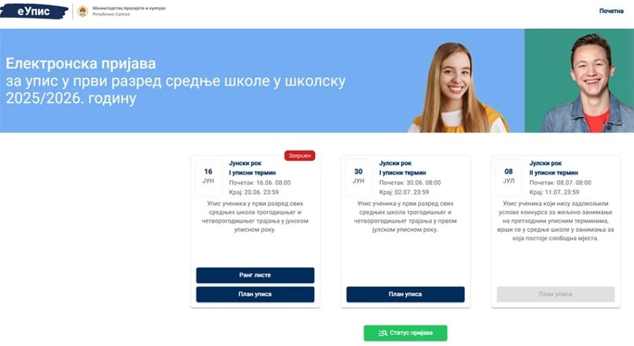 Nakon što je platforma “eUpis”, koja je ove godine prvi put uvedena za elektronski upis učenika u srednje škole u Republici Srpskoj, neko vrijeme bila nedostupna, sistem je ponovo proradio.