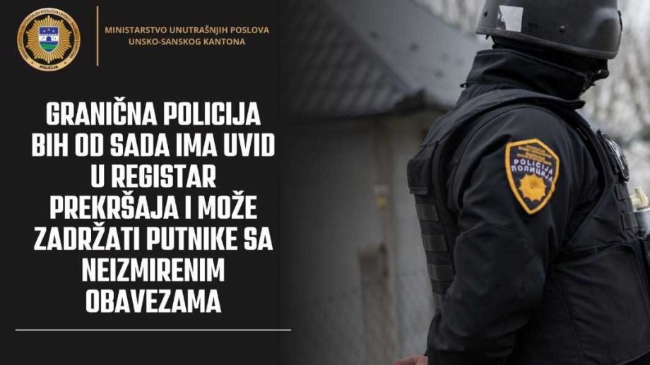 Granična policija BiH od sada ima direktan pristup registru prekršaja, što znači da svaki putnik ili vozilo s evidentiranom, a neplaćenom kaznom može biti zaustavljeno na granici i vraćeno dok se obaveze ne podmire.