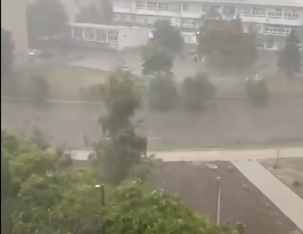 Na snimku objavljenom na društvenim mrežama vidi se kako kiša lije, dok vjetar duva jačim intenzitetom.