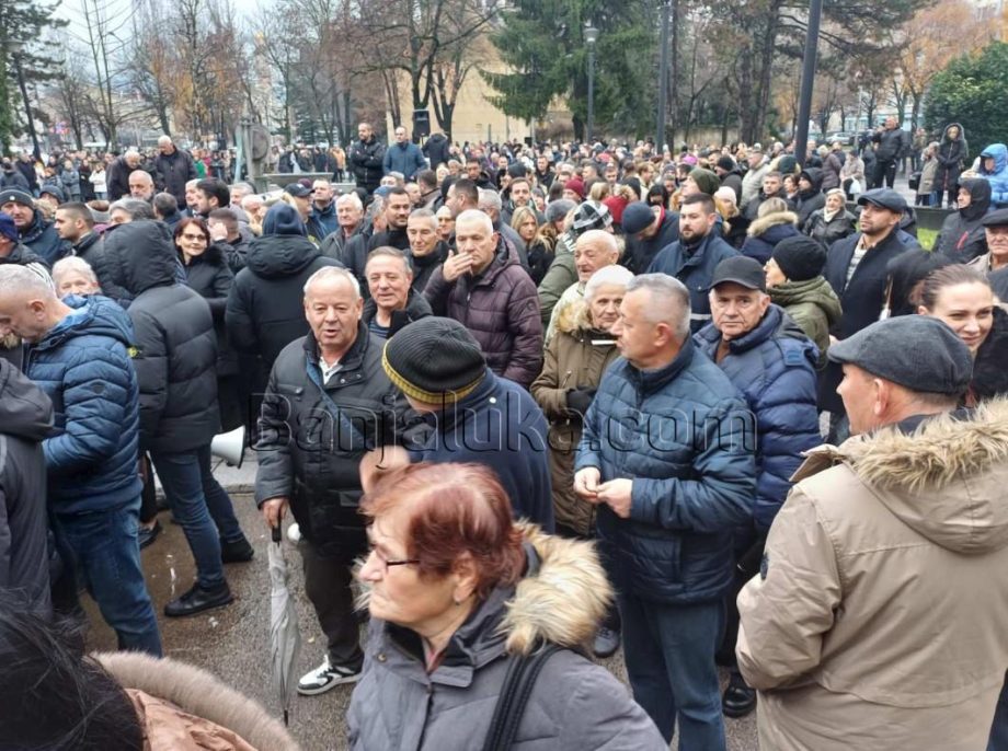 Ispred Narodne skupštine Republike Srpske u Banjaluci počeo je protest zbog protivljenja prijedlogu zakona kojim se raspodjela novca od PDV-a mijenja u korist manjih opština i gradova na račun Banjaluke i Bijeljine.