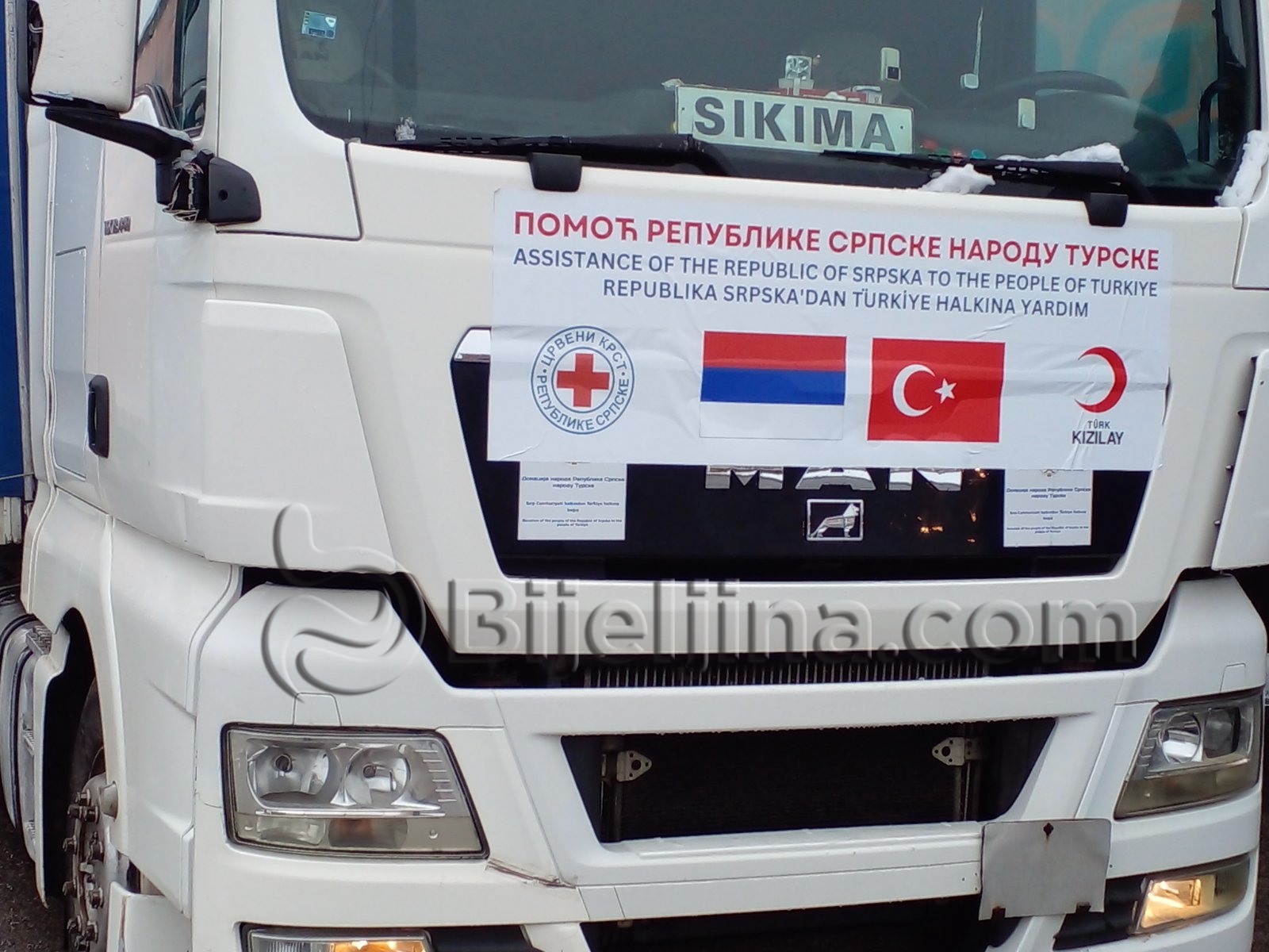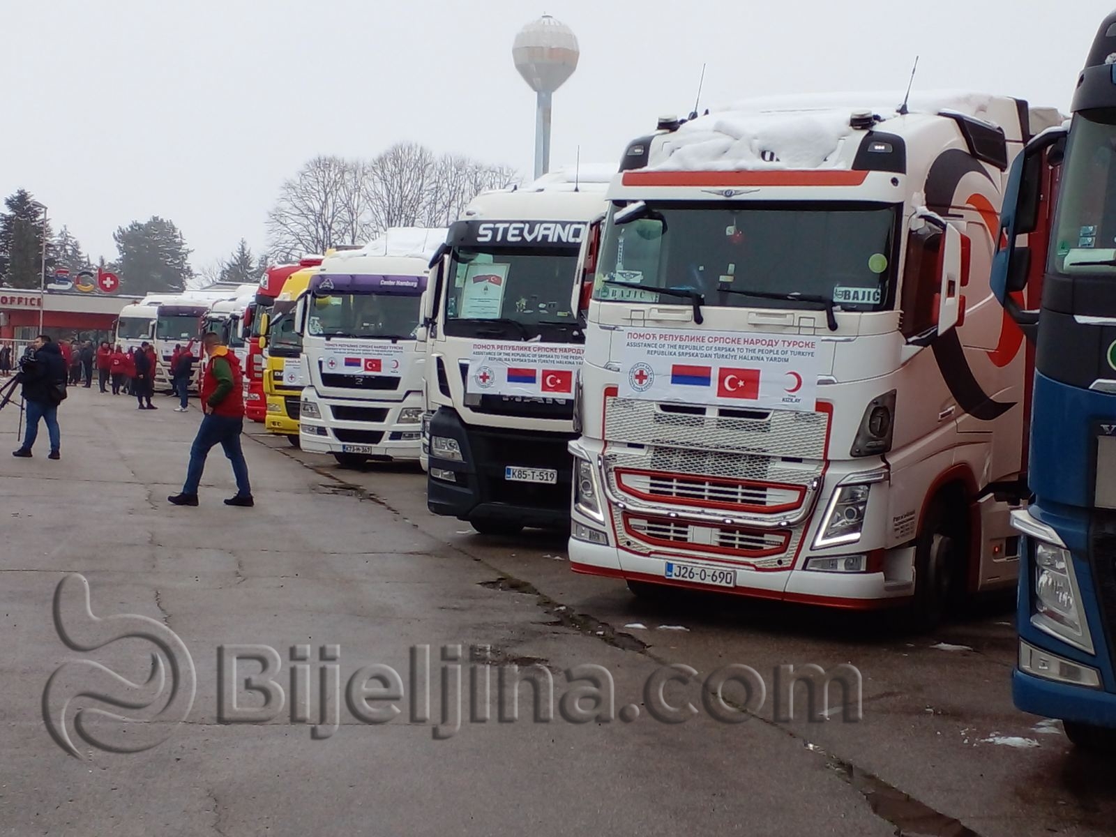 Dvadeset šlepera iz Republike Srpske, sa 430 tona hrane, ćebadi i drugih potrepština, krenulo je danas iz Bijeljine ka Turskoj.