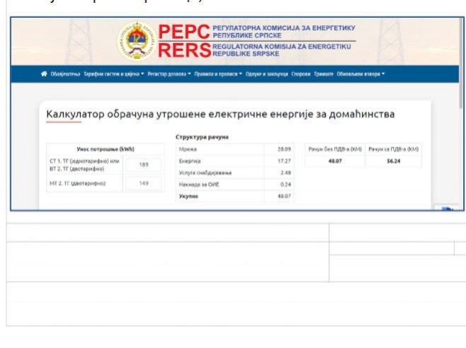Građani mogu provjeriti utrošenu električnu energiju putem kalkulatora, koji se nalazi na internet stranici www.reers.ba.