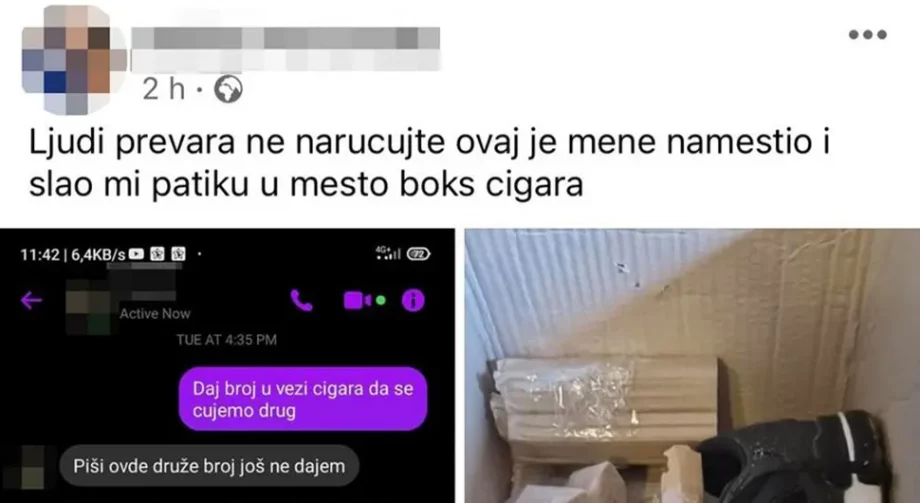 Kada je jedan građanin Srbije preko oglasne Fesjbuk grupe poručio boks cigareta, nije ni slutio da će umjesto poručenog na adresu da mu stigne – jedna patika.