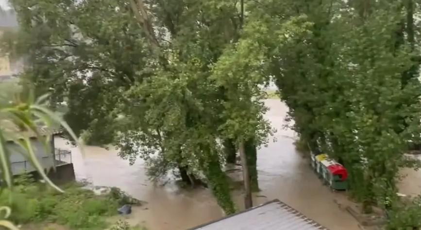U pojedinim dijelovima Slovenije padaju jaki pljuskovi. Na snimku se vidi kako se automobili probijaju po putevima koje liče na rijeke.