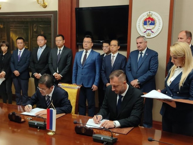 Ugovor su potpisali ministar sabraćaja i veza Srpske Nedeljko Ćorić i direktor kineske državne kompanije Čajna Šandong, DŽong Јong.