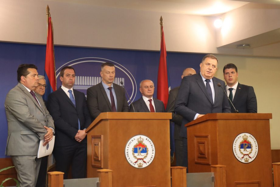 ” Oni koji su se ovaj dan odlučili da budu mimo nas, odlučili su se da budu izdajnici Republike Srpske. Na nagovor ili na pritisak sa strane spremni su da odustanu od svega. Toliko o njihovoj borbi za Republiku Srpsku”, rekao je Dodik na konferenciji za novinare nakon sastanka sa liderima političkih stranaka iz Republike Srpske.