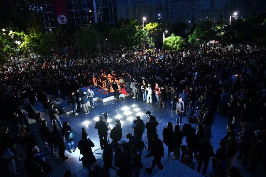 Ljudi pristižu sa svih strana. Vlada muk i tišina, ljudi su uplakani i trg je obavijen tugom.