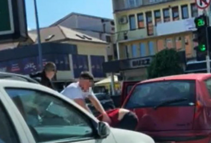 Nedaleko od mjesta obračuna je fiat punto, iz kojeg istrčava vozač i, kako se to vidi na snimku, pokušava da rastavi dva učesnika tuče.