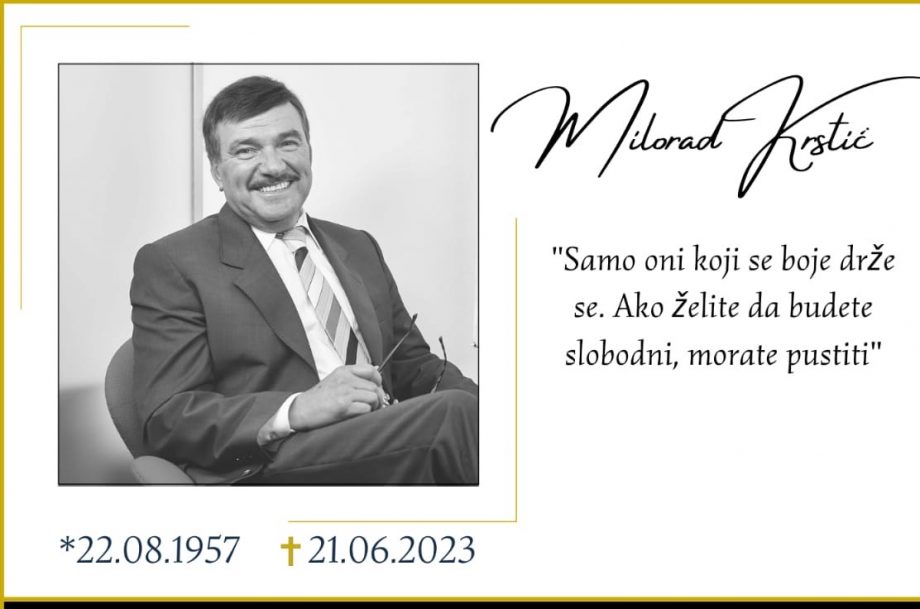 “Nakon što smo primili vijest o preranom odlasku velikog čovjeka gospodina Milorada Krstića koja se brzinom svjetlosti proširila kako u regionu tako i u Njemačkoj, Španiji, Švajcarskoj, Velikoj Britanija, Ujedinjenim Arapskim Emiratima, Kanadi i širom svijeta gdje je Milorad Krstić nesebičnim znanjem, zalaganjem, marljivošću i strpljenjem, prije svega gradio i izgradio sebe, kao velikog čovjeka a samim tim ostavio neizbrisiv trag u srcima svih ljudi širom svijeta koji su bar na trenutak imali priliku da ga upoznaju.