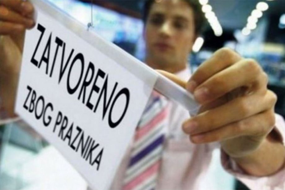 U dane praznika ne rade republički organi i organizacije, organi i jedinice lokalne samouprave, preduzeća, ustanove i ostale organizacije i lica koja profesionalno obavljaju uslužne i proizvodne djelatnosti.