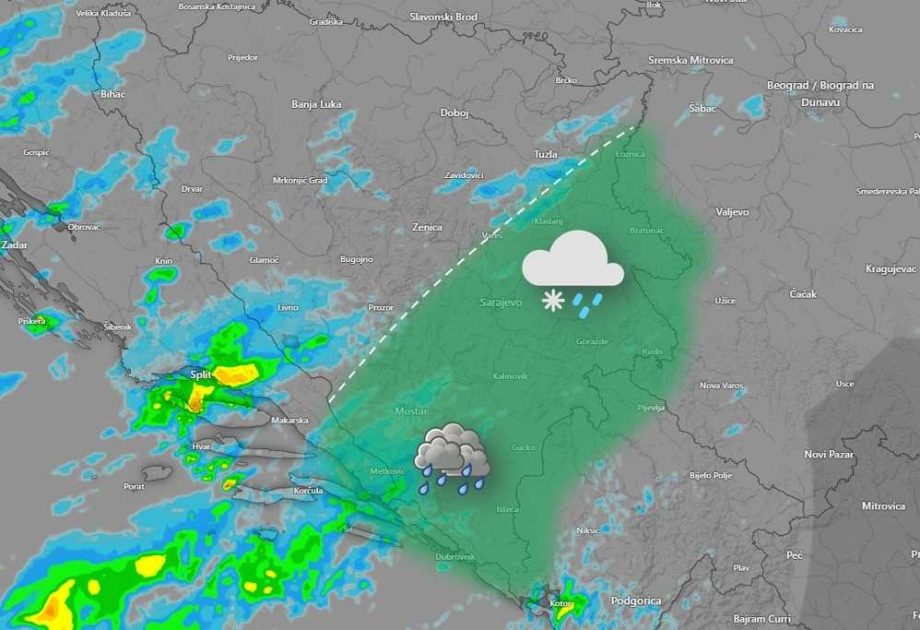 Prema prognozi BH meteo, u nizinama širom zemlje tokom večeri i noći očekuje se kiša, dok će u višim predjelima iznad 600 metara nadmorske visine padati susnježica i snijeg. Na istoku zemlje snježne padavine mogle bi se lokalno spustiti i na oko 400 metara nadmorske visine. Na jugu se zadržava kiša zbog toplijeg zraka koji dolazi sa Mediterana.